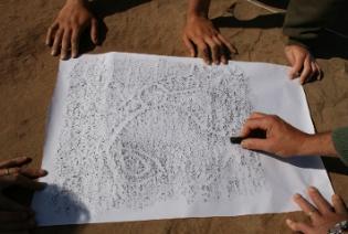 The cist and its contents were then quickly sealed the huge sandstone capstone. This stone must have been skilfully transported, possibly from an outcrop several miles to the north of the site on the other side of the River Earn. Examination of the underside of the capstone revealed an enigmatic carving, which could be described as a stylised axe or club with a spiral or ‘eye-shaped’ tail. After the cist was sealed it was covered by a cairn of smaller stones.