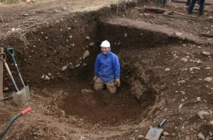 It was when the timber circle fell out of use, around 2500BC, that a massive earthwork monument, a henge, was built following the footprint of the timber circle. The ditch of the henge was substantial, up to 3m deep and 9m wide. The soil cast up from the ditch would have been mounded on the outside creating a relatively small enclosed internal space, only 20m in diameter. This bank may have subsumed any remnants of the timber circle. The construction of the henge at Forteviot was monumental and marked the location that was likely to have been used for ceremonial activity. Small burnt deposits and some smashed pottery in the ditch hint at such activities at Forteviot. Overtime the ditch naturally filled in occasionally punctuated by deposits of burnt turves thrown into the ditch from the interior.