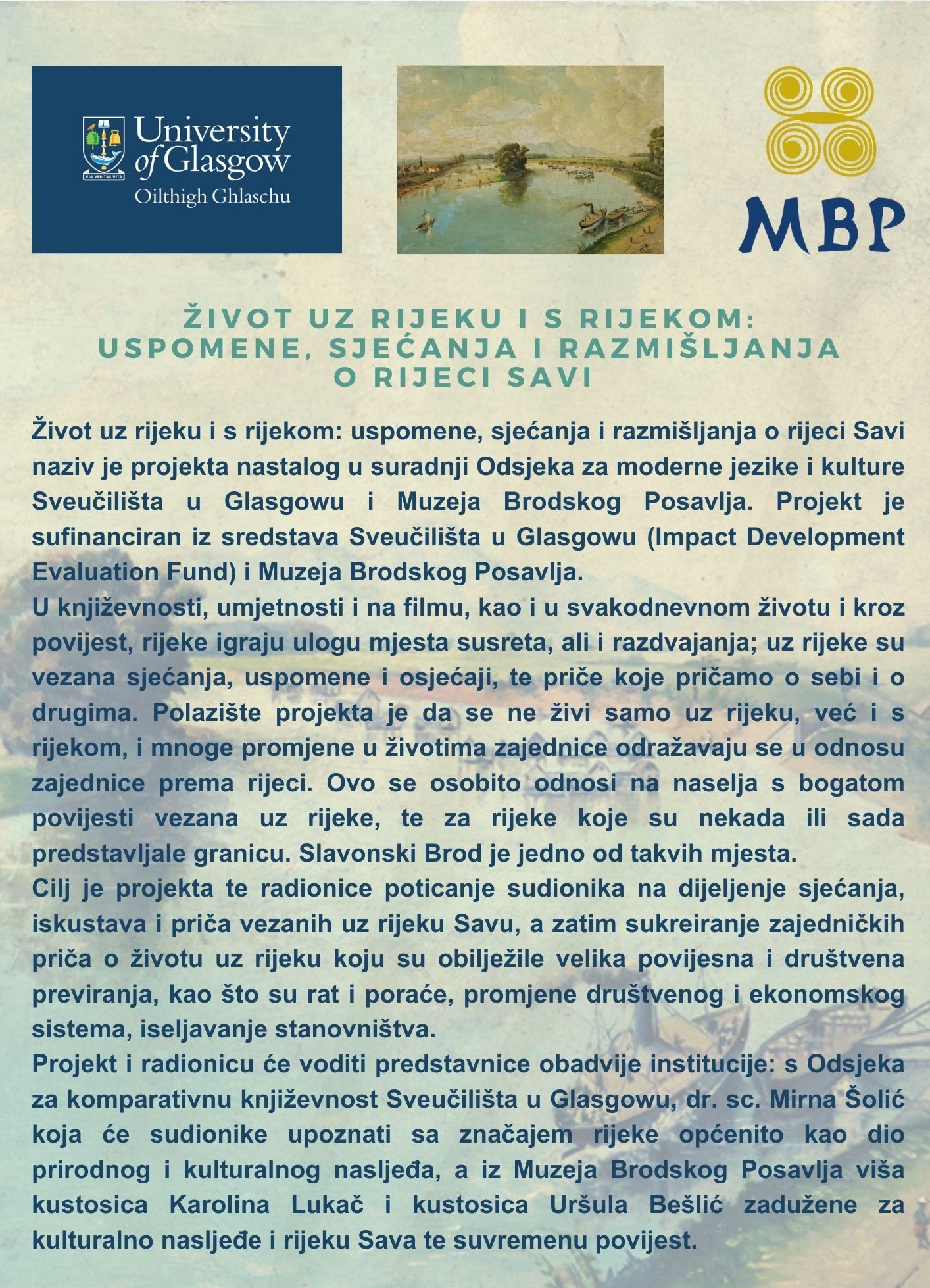 “The river runs through it: emotions, perceptions, and memories on bot sides of the Sava River” (2024/2025), was a spin-off initiative focusing on the Sava River region, which is currently a triple border (interstate, EU, Schengen), and affected by the above-mentioned issues. In partnership with a local cultural heritage partner (The Brodsko Posavlje Museum The Brodsko Posavlje Museum), project participants were invited to share memories, ideas, and experiences, and be empowered to create their own narratives of the river in creative and non-confrontational ways.