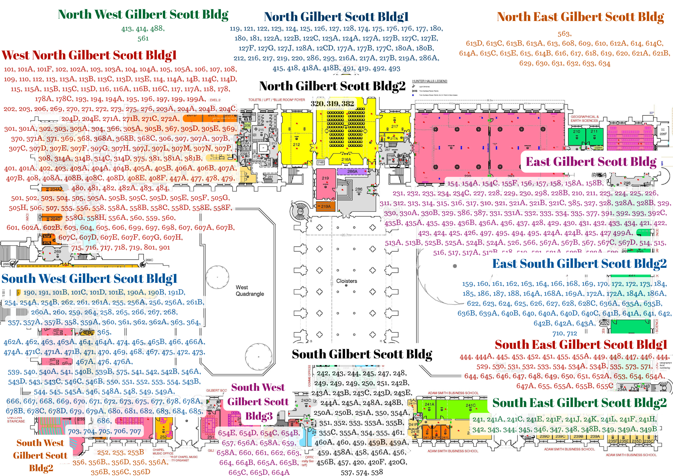 Click above to find out which rooms are affected by NP works in different areas of the Gilbert Scott Building