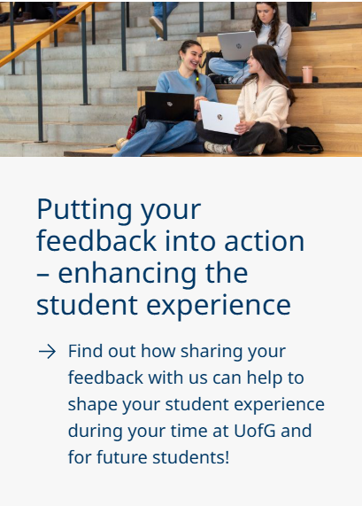 Our aim is to improve it and make it better, providing you with a more supportive, rewarding, and enriching range of opportunities that provide the experience, skills, and knowledge you need, helping you to make the most of your time at UofG and beyond.