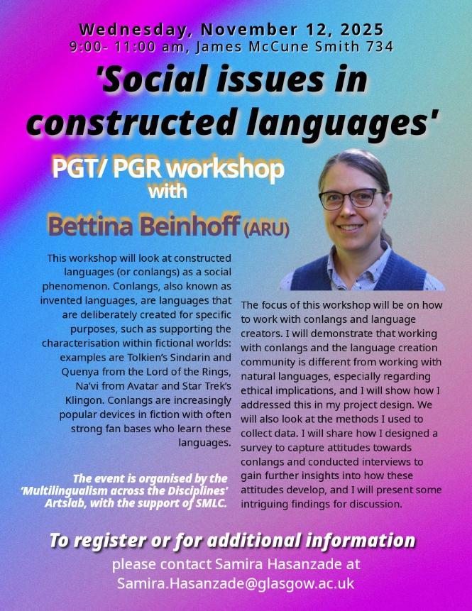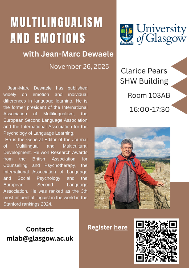 Multilingualism across the Disciplines lab brings together researchers engaging with multilingualism in different fields (literary studies, linguistics, education, psychology and neuroscience) and community organisations that work with multilingual audiences. Our aim is to foster creativity in research and interdisciplinary collaboration. Through workshops, presentations and other activities, we offer researchers the opportunity to learn about each other’s methodologies, to promote better research practice within the context of multilingualism, and to share connections with potential stakeholders. Our Multilingualism Reading Group offers a platform for members from the University of Glasgow colleges and schools to regularly share, explore and discuss research into multilingualism with colleagues across university and invited multilingualism experts from across the world.