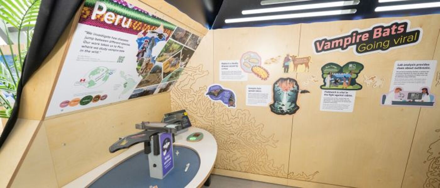 Amplify is a funded training scheme with the Glasgow Science Centre, which tasks our researchers with producing a public-facing exhibit or public engagement activity related to their academic area. The winner of the first phase of the Amplify project, ‘Bat Viruses: Behind the Scenes’ is now an exhibition which is running at the Glasgow Science Centre, investigating viruses carried by bats which can infect humans.