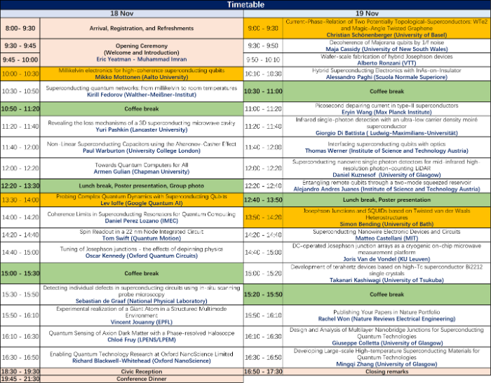 We are delighted to warmly welcome all participants to the 1st SM2Q in Glasgow. Glasgow, as one of the UK’s leading centres for quantum research, provides the ideal setting for this inaugural meeting. Beyond the technical sessions, which span materials science, device engineering, and scalable quantum hardware, we hope you will enjoy the city’s vibrant cultural heritage and its dynamic innovation ecosystem. Together, we look forward to inspiring new ideas, promoting collaborations, and shaping the future of superconducting and cryogenic quantum technologies.