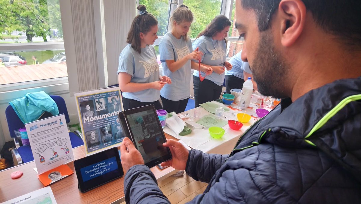 The exhibition featured colourful postcards of Monumental women for members of the public to take away, and interactive tablets.