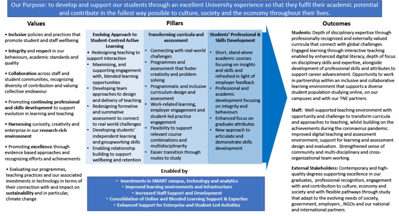Our purpose is to develop and support our students through an excellent University experience so that they fulfil their academic potential and contribute in the fullest way possible to culture, society and the economy throughout their lives.