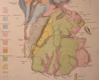 the Western Islands of Scotland. Vol.3. London, 1819. Opposite p83. Born in Guernsey in 1773, MacCulloch studied medicine at Edinburgh where he attended the Natural History class. During his time as Chemist to the Ordnance, a post held from 1806, he also acted as Geologist to the Trigonometrical Survey - in fact, the "earliest government-sponsored geological surveyor in Britain". This afforded him great opportunities for study and many of his reports appeared in the Transactions of the Geological Society of London. His Description of the Western Islands is regarded as a classic work and is illustrated by his own maps. The outline of the island bears a close resemblance to that on William Smith's map of 1815 but textual comments suggest that MacCulloch was dissatisfied with both the accuracy and scale of existing map coverage. The atlas was the product of eight summers' field work and the maps were the first to illustrate Scottish geological features by means of strike lines and dip arrows, more lithologically and structurally detailed than their precursors. Bibliography: BOUD R.C. ''The early geological maps of the isle of Arran, 1807-1858'' Canadian cartographer vol. 12 1975, pp179-193. CUMMING, D.A. 'Geological maps in preparation: John MacCulloch on western islands'' Archives of Natural History vol. 10, 1981 , pp255-271.