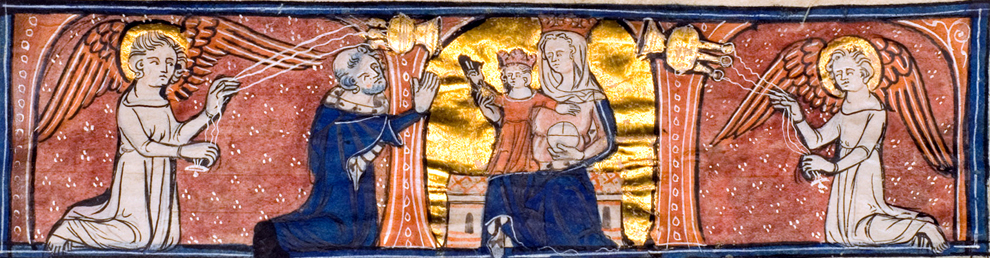 author was obviously widely read. The identification of Roger of Waltham as the first owner of the manuscript has subsequently been reinforced by Lucy Freeman Sandler (New York University) who has researched the manuscript in detail and written several articles about it. Having compared its contents with the Compendium, she has confirmed that they each contain five of the same devotional texts; furthermore, the original contents list two more works that appear in the Compendium but that are now missing from our manuscript. Like the Compendium, it is likely that Roger was closely involved in the selection of texts for this manuscript, even though it was intended for his own private use rather than circulation. |