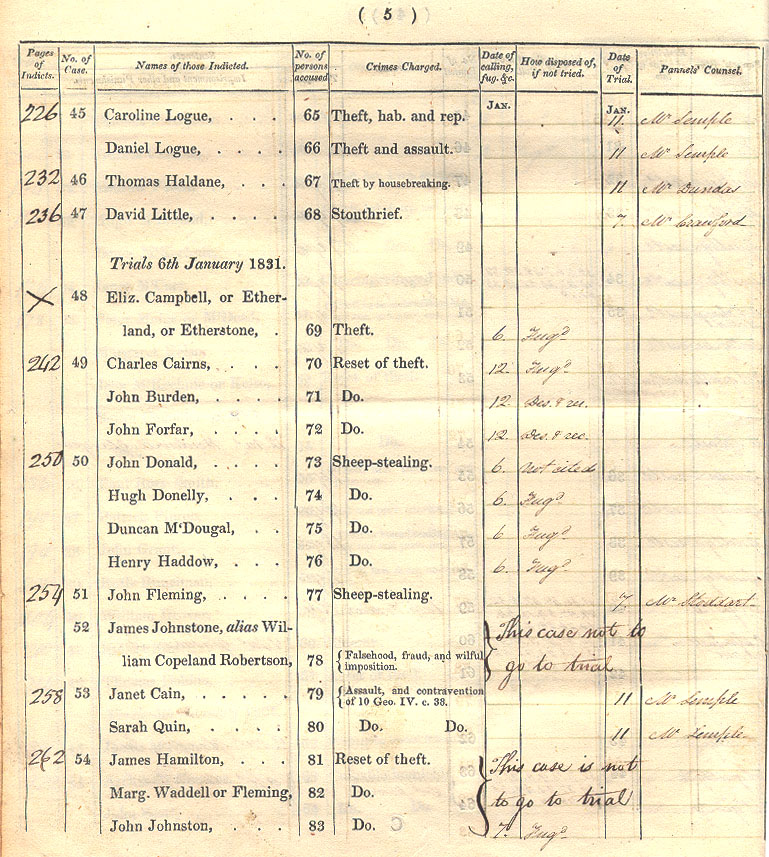 Go to sixth page of summary of trials for 1831