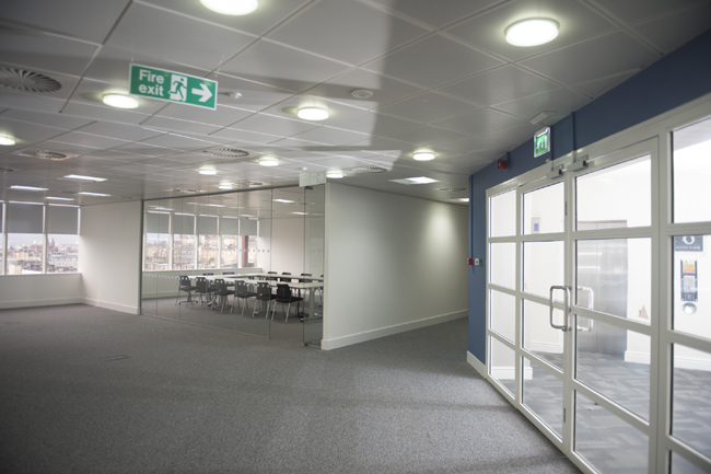 The lobby/reception area at the University of Glasgow's sixth-floor, Tay House offices. A training/meeting room is in the background. You can see a gallery of photos of the Tay House offices, taken by the University's Photographic Unit, here: