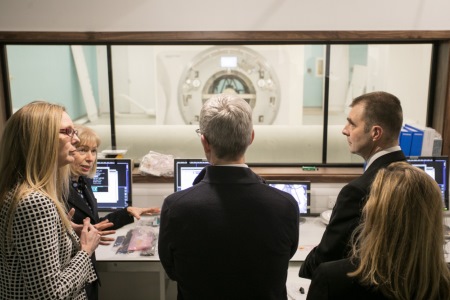 In a question and answer session with the audience, Tim singled out for praise the University’s expertise in Precision Medicine. He had earlier visited the Imaging Centre of Excellence and the Teaching and Learning Centre at the Queen Elizabeth University Hospital, meeting Professor Dame Anna Dominiczak, Vice-Principal and Head of the College of Medical, Veterinary and Life Sciences; Dr Carol Clugston, Chief Operating Officer of the College of MVLS; Dr David Sibbald, Chair of the Stratified Medicine Scotland Innovation Centre; and Dr Diane Harbison, CEO of the Stratified Medicine Scotland Innovation Centre.