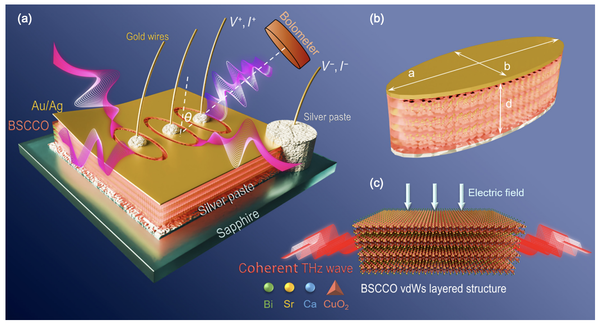 The device contains tiny elliptical cavities with special properties called Josephson junctions. They enable the phase-locked coherent generation and transmission of terahertz waves. In this architecture, the emitted waves can be tuned across a wide frequency range, from 100 GHz up to 1 THz, providing a powerful platform for compact and controllable THz signal generation.