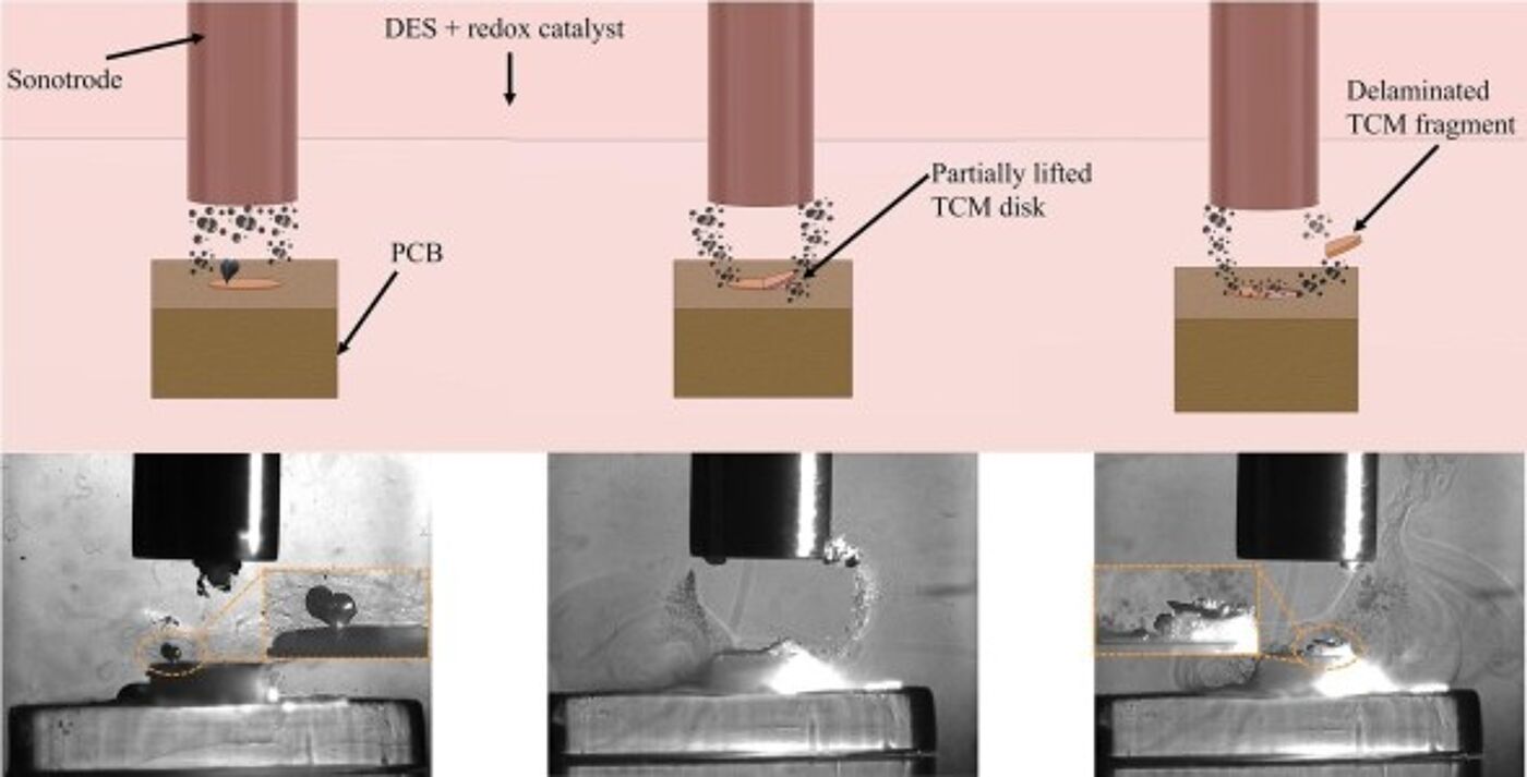 Acoustic cavitation can be used in the process to liberate materials such as oil from targets such as porous rock. We are investigating how ultrasonics can deliver highly effective processing and recovery of valuable minerals from different materials including ores, and for the recycling of e-waste. One method of such green processing is by sonocatalysis in deep eutectic solvents. Here, we are investigating new ultrasonic-based methods to enhance such effects for the sustainable processing of materials, including recycling.