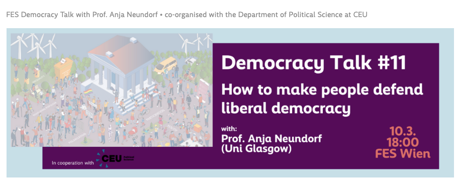 2026/03/10: Upcoming talk by Anja Neundorf at the FES Democracy Talks in Vienna.