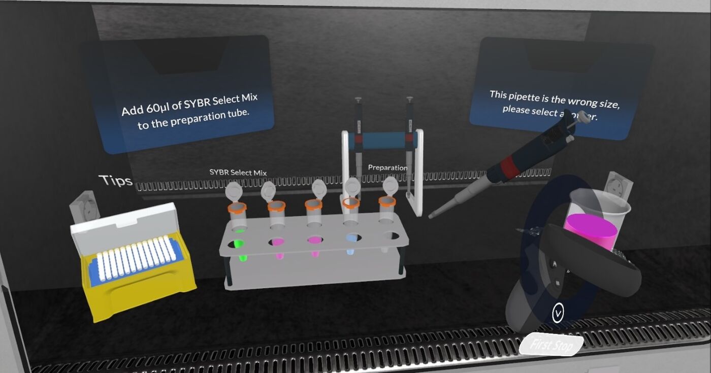 The lab spans 12m x 12m and consists of 15 learner stations. Each station consists of a high-end PC, a touch screen monitor, mixed reality headset, a tactile mat, and a UV-C sanitisation box. Click here to find out more about the hardware available.