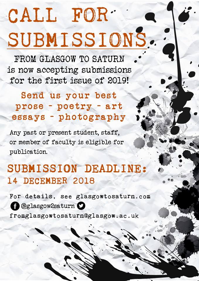 From Glasgow to Saturn are now open for prose, poetry, artwork submissions and more!