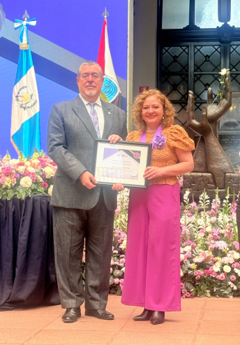 Dr Magda Angélica García von Hoegen, recent Visiting Scholar at the School of Education, was presented with the Order of Academic Excellence by the President of the Republic of Guatemala.