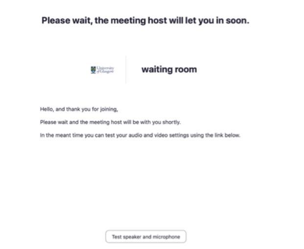 If you have waiting rooms, then anyone joining the meeting sees a welcome screen rather than joining directly and crashing an in-progress meeting.