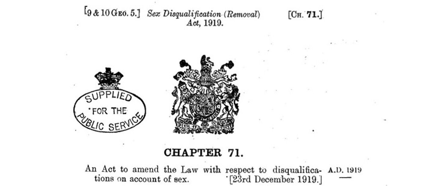 2019 marked the centenary of the Sex Disqualification (Removal) Act 1919 which paved the way for women to become lawyers for the first time.